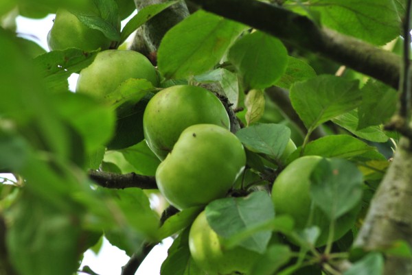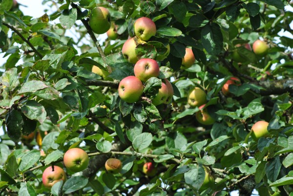 - Après la pollinisation, les pommes se développent et mûrissent jusqu'en octobre. L'ensoleillement en septembre-octobre est important pour apporter du sucre aux fruits.